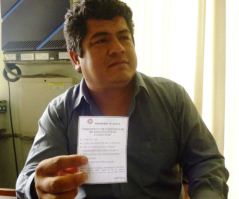 Chimbotenlinea.com(Por: Milton Palpa).- ¡Que aprovechados!. El Jefe de la División de Desarrollo Vial de la Municipalidad Provincial del Santa, Carlos Zavaleta Arteaga, denunció esta mañana que las empresas de transportes de servicio público están lucrando con la ordenanza Nº 024-2012 que emitió la comuna, con la que se otorga a los transportistas el carnet de habilitación del servicio cuyo costo es de 8 nuevos soles, señalando que algunas empresas cobran a sus afiliados 15 nuevos soles por el documento.(Foto Milton Palpa)