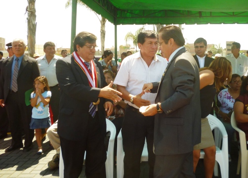 Chimbotenlinea.com (Por: Cintia Cabrera).- El alcalde distrital de Nuevo Chimbote, Francisco Gasco Barreto, culminó como siempre su discurso dominical recordando las oposiciones y votos en contra para aprobación de proyectos de los regidores que critican su gestión edil ocasionando que los vecinos sureños presentes en el izamiento lanzaran pifias contra los regidores Máximo Hernán García Pinedo y Ana María Cenas Peña. (En la foto alcalde estrecha la mano sin mirar a su opositor)Este último concejal, Cenas Peña últimamente ha alargado sus relaciones con el burgomaestre ya que en la última sesión extraordinaria se opuso a la vacancia de sus colegas Sandra Fernández Neyra, Robert Sáenz Huamanchumo y Hernán García Pinedo.