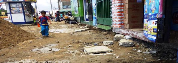 A más de un mes de haberse iniciado la remodelación de las veredas en todo el casco urbano de Chimbote, la ciudad viene luchando contra la contaminación, el caos, el desorden y congestionamiento vehicular, exponiendo la vida de transeúntes, quienes se ven expuestos a contraer enfermedades alérgicas y respiratorias y transitar entre la maquinaria pesada de la constructora que ejecuta estas obras. (Texto y foto Milton Palpa)