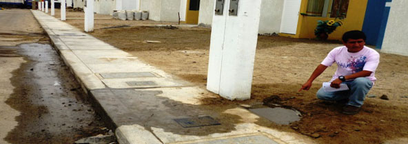 Chimbotenlinea.com (Por: Cintia Cabrera).- Sólo lleva viviendo 9 meses en una de las casas de la inmobiliaria Domus Hogares y en este poco tiempo Pedro Luis Paredes Meza, presidente de la Asociación de Residentes de la Urbanización “Paseo del Mar”, que agrupa a 150 familias, expresó el malestar de sus vecinos por las deficiencias que estas viviendas presentan.
