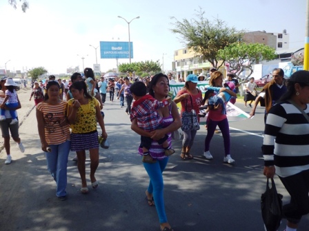 Chimbotenlinea.com (Por Cintia Cabrera).-Aproximadamente 200 moradores de algunos pueblos ubicados en el sector 5 del distrito de Nuevo Chimbote que corresponden a la periferia realizaron una marcha desde el asentamiento humano Lomas del Sur hasta el frontis de la municipalidad distrital para exigir que se dé trámite al expediente técnico de la instalación del sistema de electrificación y la ampliación de la avenida Agraria, proyectos considerados en el Presupuesto Participativo del 2012.