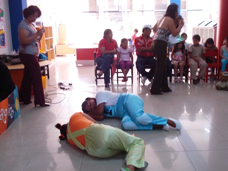 El sábado 14 del corriente se realizó la clausura de estos talleres, actividad que contó con la asistencia de por lo menos 60 niños y sus padres. Se presentaron en las instalaciones de la Sala Infantil varios números de dramatización del cuento infantil, también un festival de títeres y mimos, así como danzas, motivando la participación activa de los niños y sus padres. Al finalizar los pequeños más dinámicos recibieron un premio estímulo.