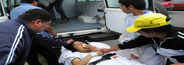 La comerciante Kelly Flores Pérez de 34 años, que fue baleada la tarde del domingo cuando sicarios acabaron con la vida del exdirigente del Mercado 2 de Mayo, Omar Castro Zurita, fue evacuada de emergencia al Hospital Regional de Trujillo. (Foto y texto Lindberg Cruzado)