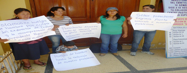 Chimbotenlínea.com (Por: Gonzalo Horna).- Con carteles en mano y acompañada de su madre, hermana, cuñada y su menor hijo, la empresaria huaracina, Rocío Carrera Huaranga, quien asegura haber financiado la campaña del presidente regional, César Álvarez Aguilar y del congresista Heriberto Benítez Rivas, inició esta mañana su huelga de hambre.