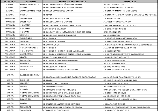 En el caso de los distritos se hará en las siguientes Instituciones Educativas :