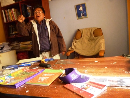 El enfrentamiento se inició al promediar las 8: 30 de la mañana cuando obreros del sindicato de Nolasco Campos quisieron iniciar sus labores