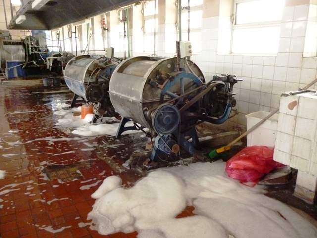 En la sala se observan 2 planchadores que lucen el cartel de “malogrado”, una secadora industrial que tiene años paralizada, la lavadora principal que luego de varias reparaciones siempre resultó inservible.