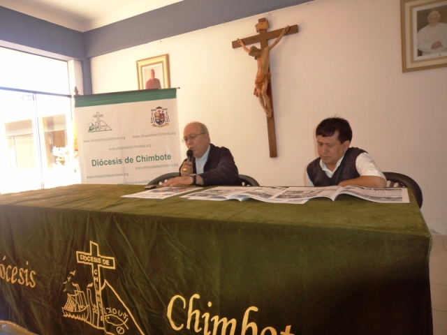 Chimbote en Línea (Iglesia en Chimbote).-El Obispo de Chimbote, monseñor Ángel Francisco Simón Piorno, anunció con júbilo las diversas actividades religiosas y culturales que se desarrollarán del 16 al 18 de noviembre, con motivo de celebrar las Bodas de Oro de creación de la Diócesis de Chimbote. Fue durante una conferencia de prensa que se llevó a cabo hoy por la mañana en el auditorio del Obispado. (Fotos: Cecopros)
