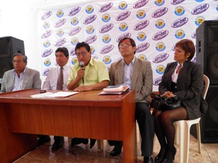 Chimbotenlinea.com (Por: Lindberg Cruzado).- El presidente de la Asociación Fondo Central de Transportistas de la Provincia del Santa (Afocentrapsa), Líder Saavedra Paredes, presentó esta mañana al staff de abogados de la Defensoría del Transportista, el cual está encabezado por el abogado Fernando Cueto Chavarrí. (Foto Lindberg Cruzado) “No queremos confrontar con las autoridades, por el contrario tenemos el ánimo de aportar a que se respete el reglamento de tránsito en todos sus extremos, los abogados de la Defensoría del Transportista está para orientar a nuestros hermanos conductores a no atropellar las normas, pero también a defenderlos ante un posible abuso de la policía de Tránsito o la municipalidad”, mencionó.