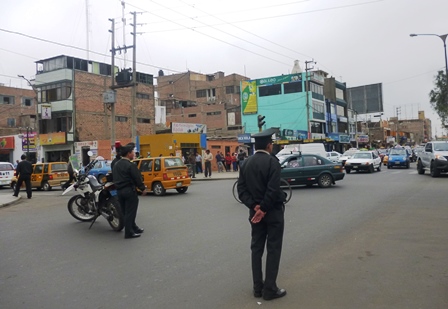 Con vehículos policiales, de serenazgo, grúas, cintas amarillas y letreros, se impidió el libre tránsito, lo que motivo que parte de los transportistas desde muy temprano se desplacen a pie para exigir sus demandas frente al palacio municipal.