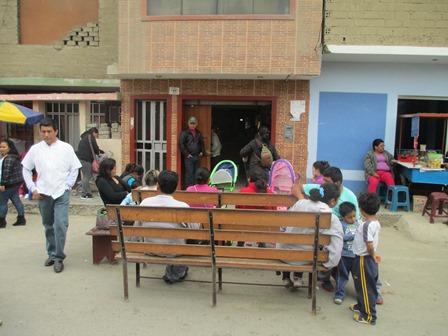 En este local funcionan 18 ambientes y atienden diariamente a 180 personas, entre niños y grandes, han instalado su sala de espera en la vía pública. Sentados en bancas esperan su turno en plena pista.