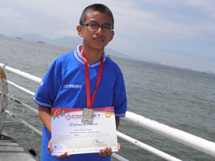 La Medalla de Plata lo ganó también un niño chimbotano: Ricardo Aznarán Herrera del colegio Dewey W. Hawking. (Por: Lindberg Cruzado)