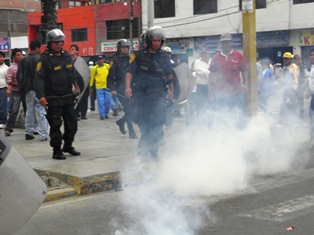 lacrimógenas que no solo corrió a los docentes, sino también afectaron a los transeúntes y comerciantes de los mercados Nuevo