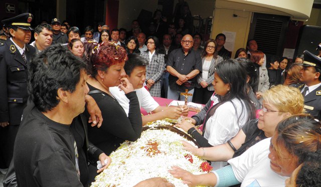 El cortejo fúnebre partió a las 9 a.m. de la casa de duelo ubicada en el pueblo joven San Pedro, se ofició una misa de cuerpo presente para después el féretro ser llevado al Palacio Municipal de Chimbote, donde sus compañeros de trabajo lo despidieron en medio de un hondo pesar.