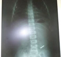 El médico del área de Neonatología de dicho nosocomio, Carlos Aréstegui Ramos, dispuso sacarle una placa radiográfica y corroboró las sospechas, encontrando un clavo alojado dentro de sus intestinos lo cual fue una sorpresa para sus colegas que estuvieron presentes durante la revisión de la radiografía.
