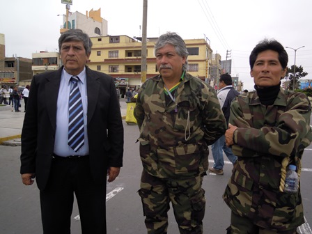Estos hombres y mujeres que desde temprano se alistaron para desfilar en representación de los pueblos jóvenes de Nuevo Chimbote mostraron su desconcierto por la actitud de las autoridades a quienes alguna vez les dieron su voto. (Texto y foto: Milton Palpa)