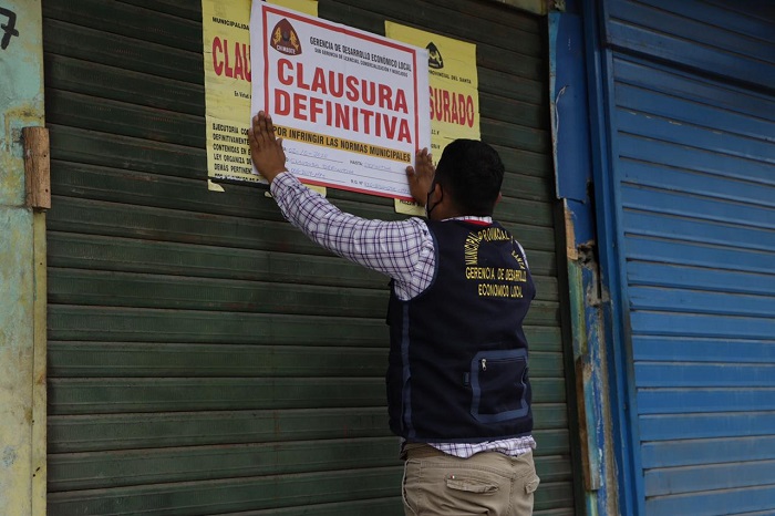 Al promediar las 2: 00 p. m., el personal de dicha área municipal, con el apoyo de la Policía Nacional y agentes de Seguridad Ciudadana procedió con el cierre de este centro de abastos, el cual representaba un foco infeccioso para la propagación del nuevo coronavirus (Covid 19).