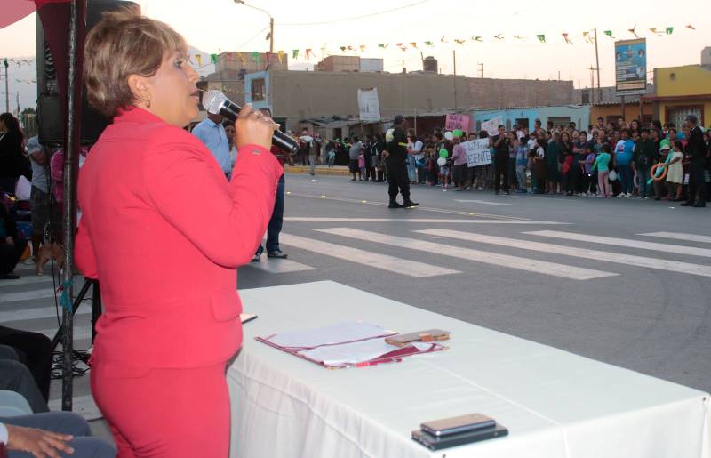La alcaldesa también inauguró el mejoramiento vial del jirón Camino Real, una vía perpendicular a la avenida del mismo nombre; que permitirá un mejor servicio vehicular y peatonal, reducirá los accidentes peatonales, construcción de aceras y de acceso a los predios.