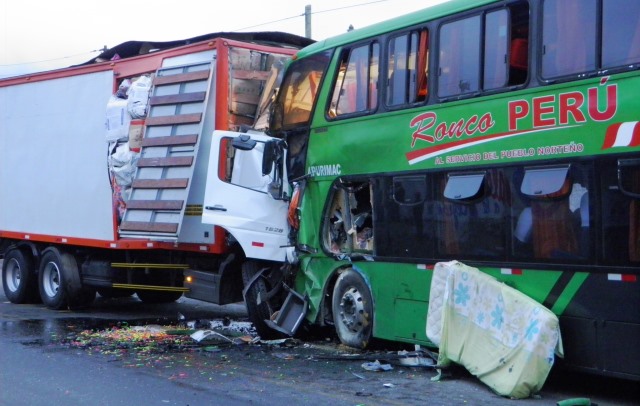 Efectivos de la Policía de Carreteras informaron que el chofer del camión carguero de la empresa El Norteño que se dirigía de Lima a Trujillo invadió el carril contrario impactando violentamente contra el bus que partió de Chulucanas con destino a Lima con 46 pasajeros a bordo.
