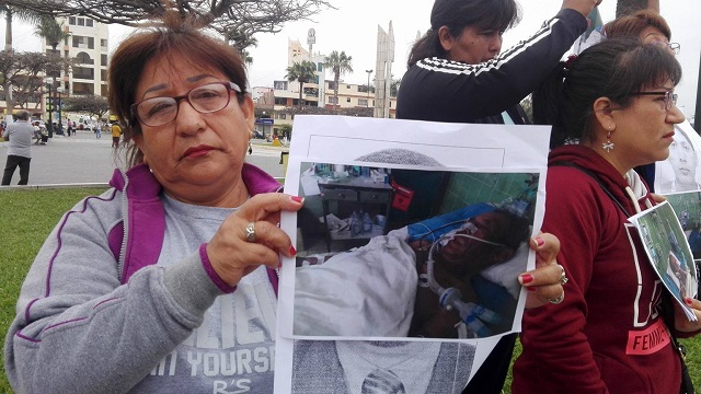 Por su parte, Martha Chuquino Gamboa dijo llorando que los médicos no le dieron esperanza de que su padre se recupere, “solo nos indicaron que esperemos nomás, que ya nada se puede hacer. Es doloroso ver a mi padre conectado a un respirador artificial por el traumatismo encéfalo craneano que ha sufrido, él no estuvo mal, es un hombre fuerte, trabaja como albañil a pesar de su edad y este motociclista debe asumir su responsabilidad por este grave daño causado”, añadió.