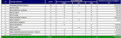 A continuación el cuadro con muestra de número de casos auditados en Áncash que suman un perjuicio económico por cerca de 117 millones de nuevo soles.