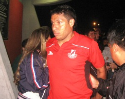 En esas circunstancias salió el delantero colombiano Martín Arzuaga acompañado de su esposa y de su hijo. Apenas los barristas lo vieron lo interceptaron para gritarle por la derrota ante los santos y por haber fallado una clara oportunidad de gol que iba a ser el 2 a 0 a favor de Gálvez.