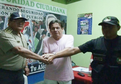 Chimbote en Línea (Nuevo Chimbote).- Acompañado del jefe de la División Policial, coronel PNP Edgard Aguilar Amaro, el alcalde de la Municipalidad de Nuevo Chimbote, Francisco Gasco Barreto, hizo entrega de una donación a los integrantes de las Rondas Urbanas del Sector II del distrito.