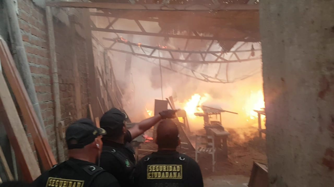 Serenos de Nuevo Chimbote ayudan a controlar incendio en local de maderera