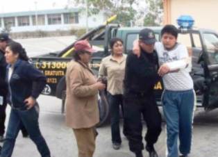 Seguridad ciudadana acudió al llamado para el traslado. El alumno Junior Villanueva Domínguez (14) resultó con el brazo fracturado al soportar el fuerte impacto de su cuerpo sobre el miembro.