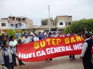 Chimbotenlinea.com (Por: Cintia Cabrera).- La marcha de docentes afiliados al Sindicato Único de Trabajadores de la Educación (Sutep) se trasladó hacia el distrito de Nuevo Chimbote en el marco de su huelga indefinida, en la que muestran su rechazo al Proyecto de Reforma de la Ley Magisterial, ya que aducen les recortaría sus remuneraciones salariales.